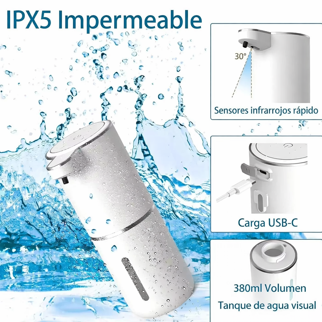 Operación sin contacto: Sensor infrarrojo que dispensa automáticamente, reduciendo la propagación de gérmenes.